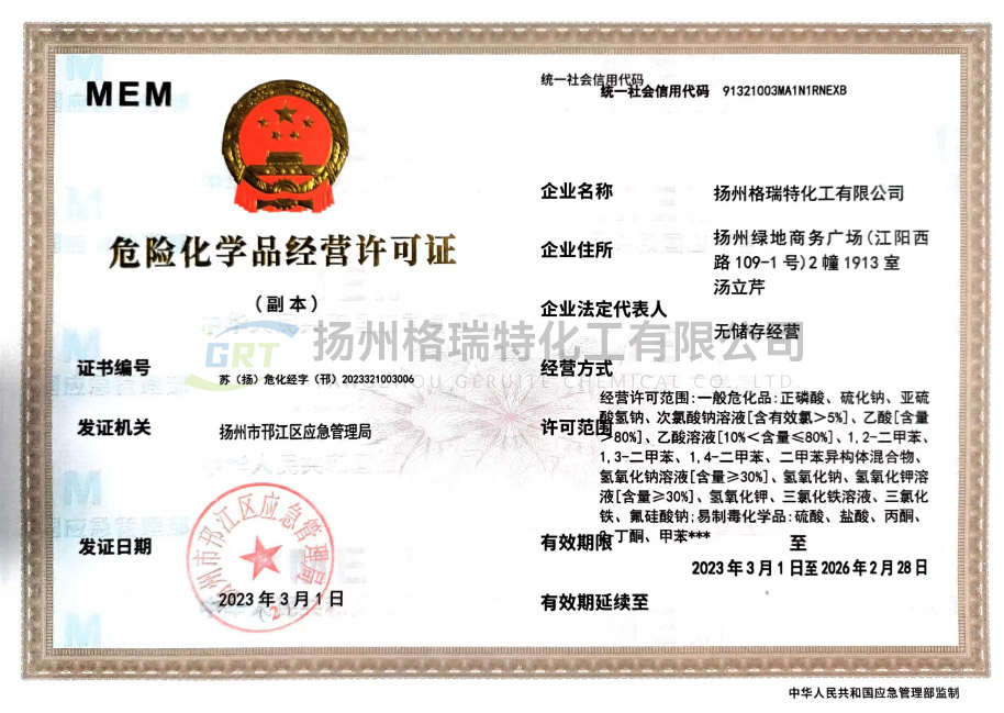 揚(yáng)州格瑞特化工有限公司生產(chǎn)工廠坐落于江蘇省海安縣胡集工業(yè)園區(qū)和海安精細(xì)化工工業(yè)園。總公司成立于1999年,是集科、工、貿(mào)為一體的現(xiàn)代化生產(chǎn)型企業(yè)。專業(yè)致力于水處理劑、紡織印染助劑、化纖油劑等產(chǎn)品的科研、開發(fā)、生產(chǎn)和銷售。總公司占地面積40000m,建有現(xiàn)代化標(biāo)準(zhǔn)廠房,擁有先進(jìn)的生產(chǎn)設(shè)備。年產(chǎn)各類水處理劑系列產(chǎn)品12000噸,紡織印染助劑5000噸,產(chǎn)品12個系列40多個品種。總公司注重技術(shù)投入,設(shè)立產(chǎn)品研發(fā)中心和環(huán)保運營中心,聘請了多位專家為公司技術(shù)顧問,并和多個重點院校建立了長期技術(shù)合作開發(fā)關(guān)系,是南通大學(xué)、江南大學(xué)、南京工業(yè)大學(xué)產(chǎn)學(xué)研基地。